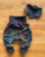 Die Hose ist an den Beinen schmal geschnitten und obenrum locker, so dass sich die Kleinen richtig toll bewegen können. Durch das breite Bündchen kann die Hose mindestens zwei Kleidergrößen lang getragen werden. Am Anfang können die Bündchen umgekrempelt werden und danach normal.